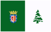 verticales, verde al asta, blanca la central, con el escudo municipal en el
